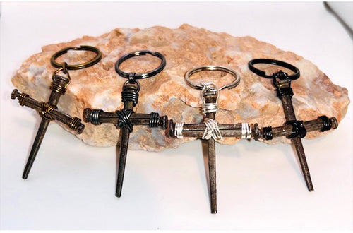 Iron Nail Cross Keyring - Hand Foraged Rustic Christian Gift, 8th Bronze Anniversary (Set of 2) - FREE GIFT BOX -